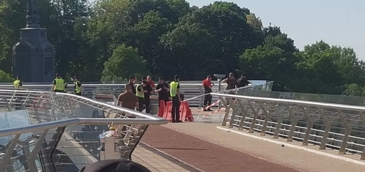 Лопнуло скло: відкритий напередодні в Києві пішохідний міст закрили (фото)