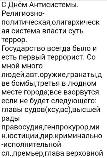 Терорист, який посеред Луцька захопив автобус із пасажирами, опублікував свої вимоги у Twitter. Зокрема, він «привітав» усіх із днем антисистеми і заявив, що «держава – це перший терорист».