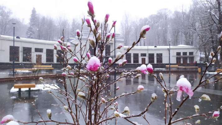 Також у сніговому полоні опинилися фруктові дерева, які почали квітнути. Зокрема квітли абрикоси, алича та чершні. Також вже з'явилися квіти на магноліях.