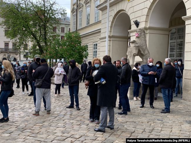 Близько 100 підприємців Львова, переважно фізичні особи-підприємці, які орендують приміщення на ринках під крамниці одягу, взуття, протестували 12 травня біля міської ради у Львові. Як передає кореспондент адіо Свобода, люди вимагали від влади дозволити їм працювати. На плакатах, які підприємці тримали в руках, було написано: «Своїм все – іншим карантин», «Дайте нам працювати», «Нагодуйте моїх дітей і я залишуся вдома».