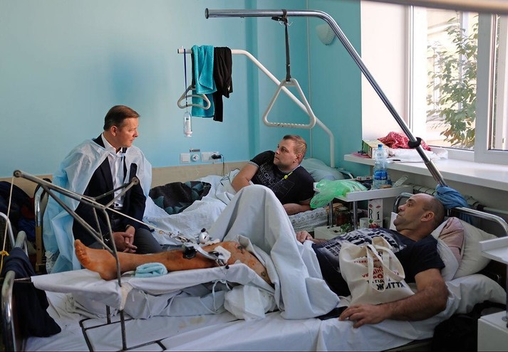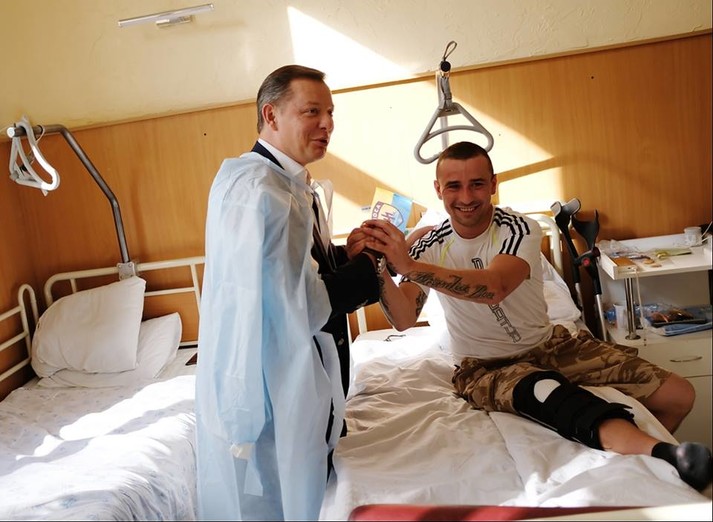 «З Тарасом Моторою (з одним з поранених бійців) з «Айдара» ми розминулися на фронті: він отримав поранення 23 серпня і був доставлений в лікарню, а я відвідав їх частину на Луганщині 24 серпня, в День Незалежності... Тарас з Сєвєродонецька Луганській області - так само, як і моя рідня. Він пішов на фронт заради того, щоб його дружина Світлана і дочка Аня жили під мирним небом. Сьогодні вся сім'я приїхала підтримати тата. Дружина і дочка дуже ним пишаються. І я теж пишаюся Тарасом і бажаю йому козацького здоров'я», - зазначив Ляшко.