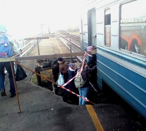 На залізничній станції «Дачна», що знаходиться на напрямку Запоріжжя-Мелітополь частково зруйнувалася платформа, через що пасажирам буквально доводиться чекати поїзд в ямі, передає ЦТС.