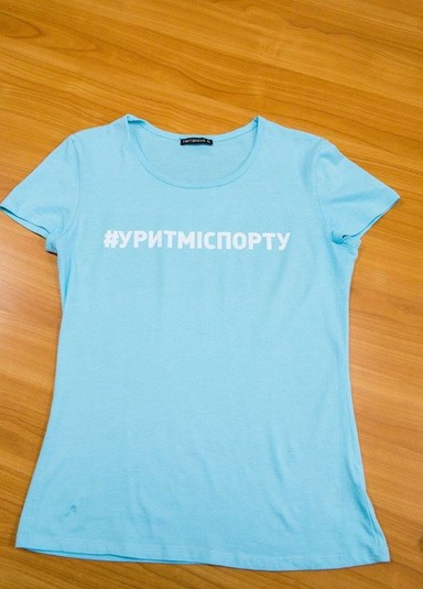 - Лот № 4. Футболка Марини Порошенко #уритміспорту зі спортивної рубрики «У ритмі спорту з Мариною Порошенко». Стартова ціна: 2 000 грн.