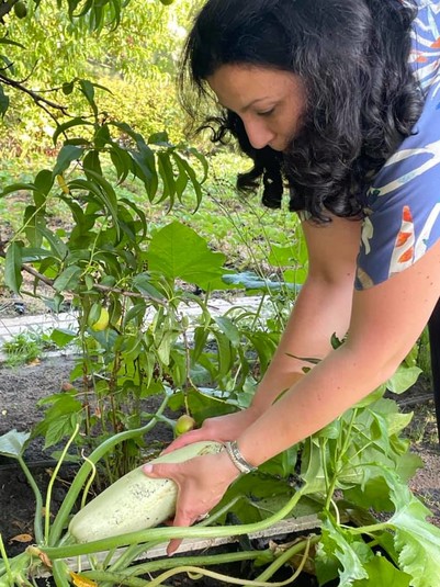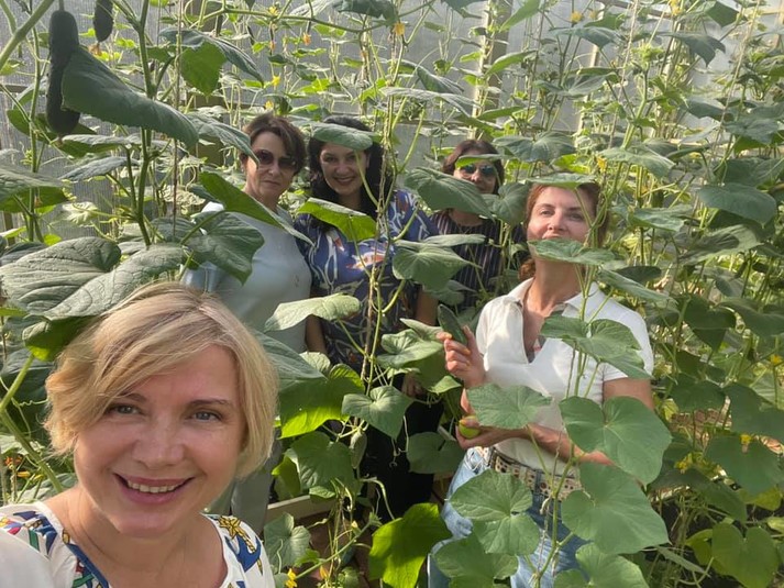 «На охайних грядках- традиційний український набор: вродили й огірки і кабачки, набираються сонця кілька видів помідорів, є капуста, перець, баклажани, гарбузи. З незнайомих мені кущів – ревінь, Марина розповіла, що їх родина любить компоти і пироги з цими корисними стеблами», – розповіла Геращенко і оприлюднила світлини з городу.