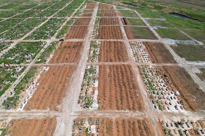 Видання Sky News опублікувало фото з дрона, на яких видно свіжі могили на цвинтарі під Маріуполем. Загиблих цивільних так багато, що їх ховають у траншеях.