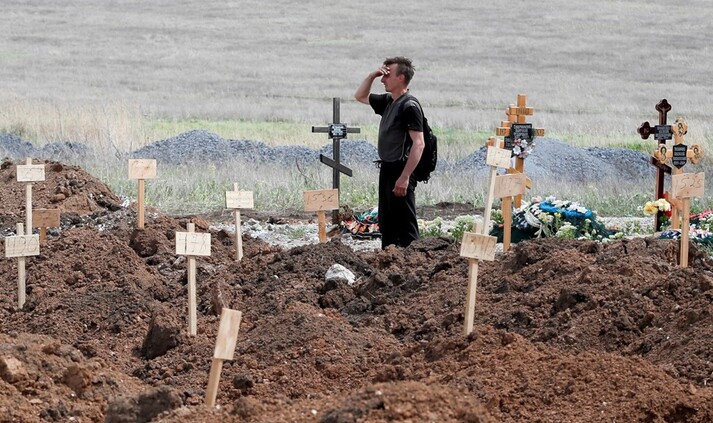 Свіжі могили на цвинтарі під Маріуполем більше нагадують траншеї