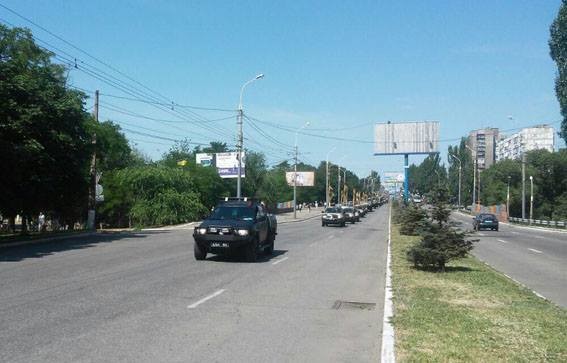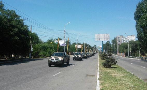 О 9-й ранку біля торгівельного центру «Амстор» вишикувалась легкова та броньована колісна техніка, яка, сформувавшись у колонну, рушила проспектом Миру до Театральної площі.