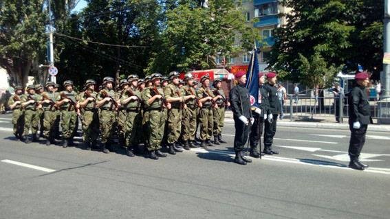 «…Центральним проспектом рухається колонна військової техніки у супроводі поліцейських авто. Правоохоронці та військовослужбовці Нацгвардії України стежать за тим, аби захід, який почнеться менш ніж за годину, пройшов за безпечних умов», - йдеться в повідомленні.