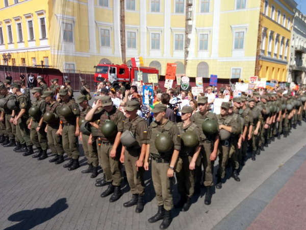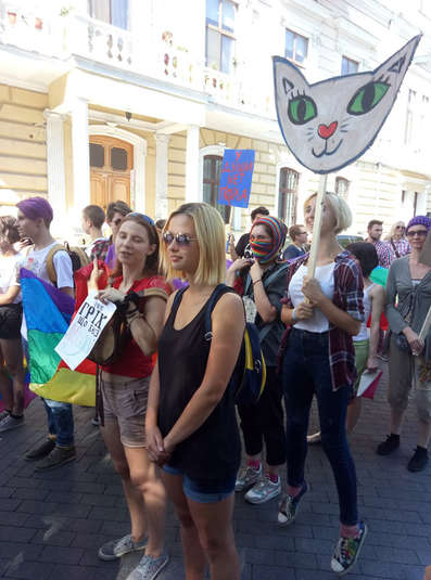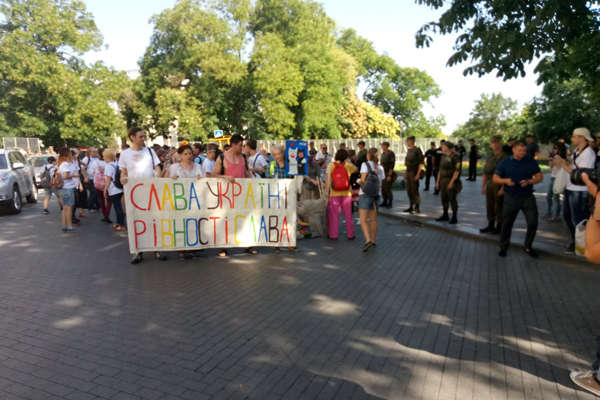 «Патріоти» кричали: «Пі..си», «Україна понад усе» і «Голуб’ятню геть». У відповідь представники ЛГБТ скандували: «Слава Україні, гідності - слава», «Одеса без гомофобії».