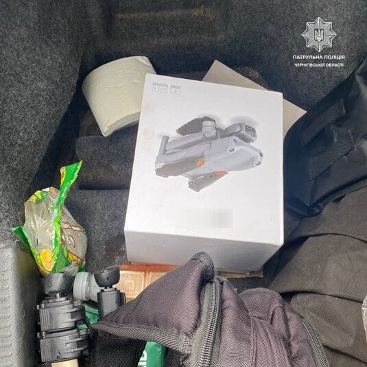 Під час огляду авто патрульні виявили дрон, сім-карти російських мобільних операторів та флеш-накопичувачі з великим обсягом інформації.
