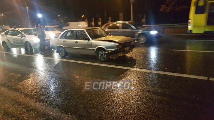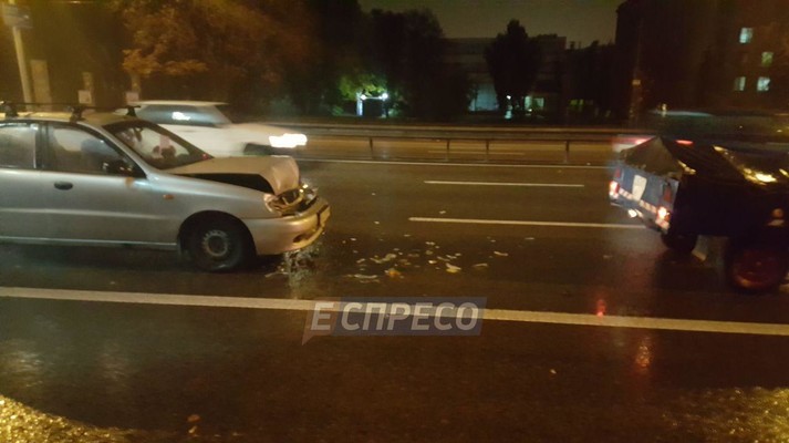 Аварія сталася неподалік від Шулявського мосту в напрямку центру. Зіткнулися легковики Audi, Daewoo, Volkswagen, Mercedes i Mazda.