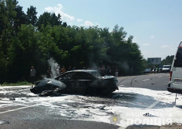 «Близько 13.10 в поліцію надійшло повідомлення про ДТП поблизу села Тетерівка Житомирського району. На автодорозі зіткнулися мікроавтобус і автомобіль BMW... В результаті зіткнення легковий автомобіль загорівся», - йдеться в повідомленні.