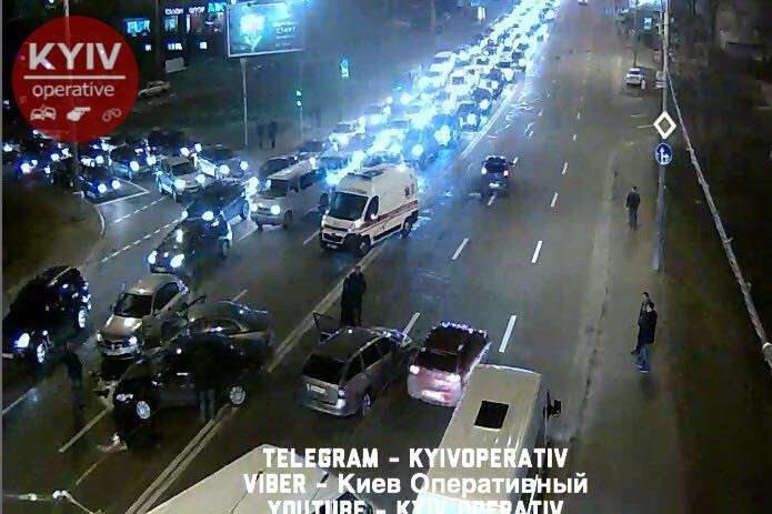 У Києві сталася масштабна ДТП з потерпілими в районі Повітрофлотського шляхопроводу на вулиці Чорновола, повідомляє дтп.kiev.ua.