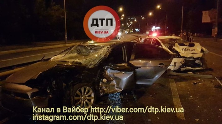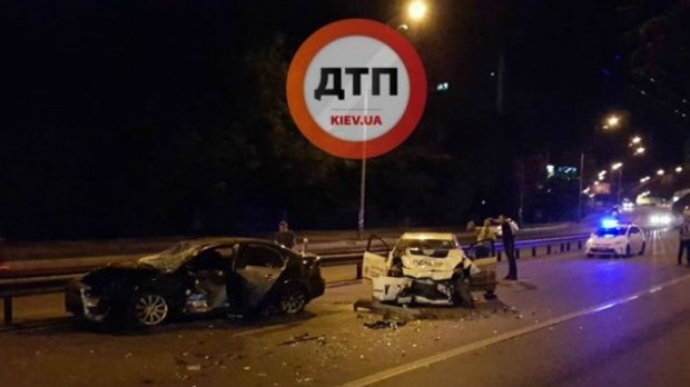 Як повідомляє портал Dtp.kiev.ua у Facebook, водій «БМВ» втікав від поліції. Водій «Лансера», який рухався по іншій смузі, побачивши погоню почав гальмувати, авто занесло і водій вчинив зіткнення з машиною поліції.