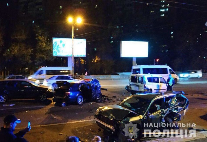 Автомобіль BMW під керуваннями 37-річного водія скоїв зіткнення з дев’ятьма автомобілями, що зупинилися на червоне світло