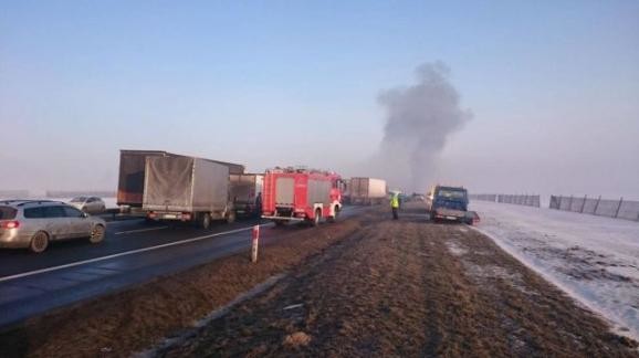 За попередньою інформацією, причиною аварії стало зіткнення двох вантажівок, які рухались у напрямку міста Лодзь.