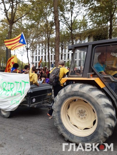 Під час акції прихильників незалежності Каталонії проїхали з десяток тракторів, на яких майоріли прапори та були вивішені гасла