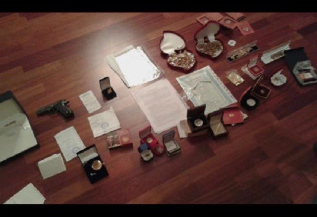 «В даний час продовжується проведення обшуку в домоволодінні затриманого першого заступника Миколаївської ОДА. Публікую окремі фото з обшуку домоволодіння, де тільки що знайдено валізу, в якому знаходяться готівкові кошти на суму в кілька сотень тисяч доларів США, золоті прикраси та ... фашистські хрести», - написав Матіос.