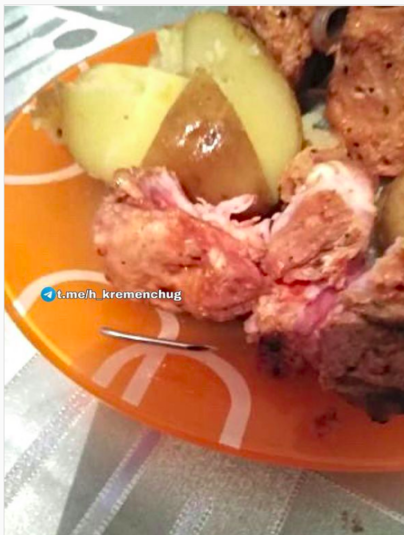 «Як прекрасно проведений вихідний зі смачним шашликом міг би бути зіпсований походом до лікаря. У купленому ошийку в Маркетопті на Московській було виявлено уламок голки, врятувало те, що людина все ріже ножем на дрібні шматочки», – підписала фото авторка публікації.