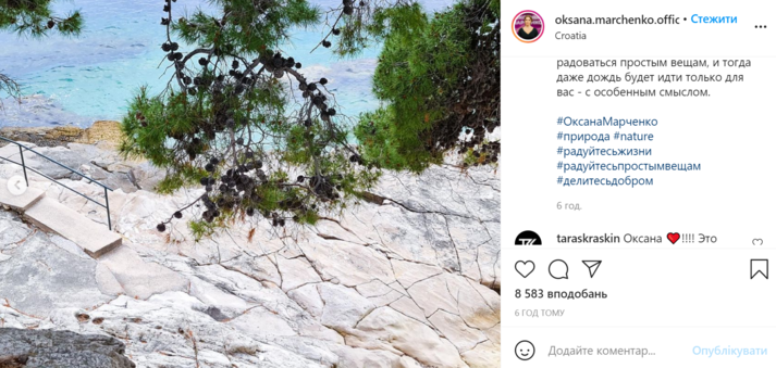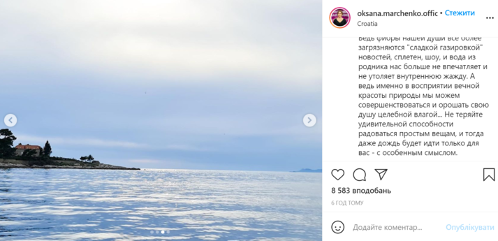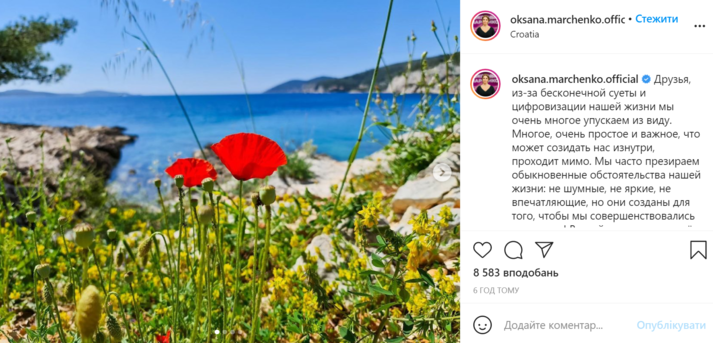 Марченко написала під світлинами філософський пост про те, що через суцільну метушню ми часто випускаємо важливі речі з поля зору.
