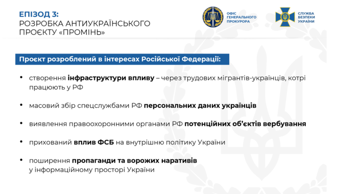Окрім того, Медведчук і Козак готували проєкт «Промінь». Це план формування мережі агентів впливу з Росії для підривної діяльності в Україні.