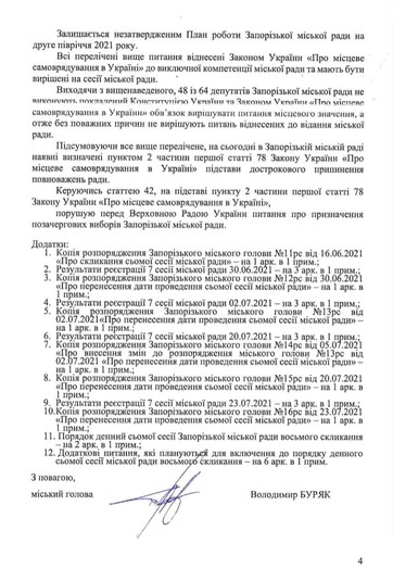 Відповідно, сесія міської ради має бути проведена не пізніше ніж на початку вересня – в іншому разі мер Запоріжжя матиме право звернутися до парламенту щодо розпуску міської ради.