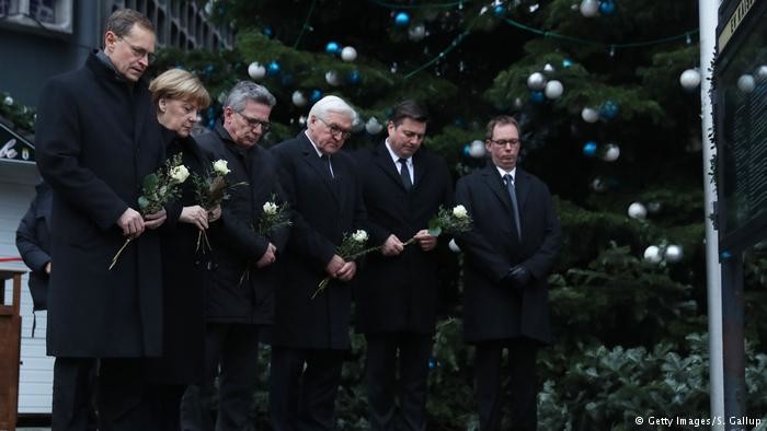 Меркель та Штайнмаєр у супроводі сенатора з внутрішніх справ Берліна Андреаса Ґайзеля та бургомістра міста Міхаеля Мюллера поклали квіти між старою та новою будівлями церкви кайзера Вільгельма та вшанували жертв трагедії хвилиною мовчання. Після цього канцлерка Німеччини та глава МЗС країни відвідали місце трагедії, де поспілкувались із представниками поліції.