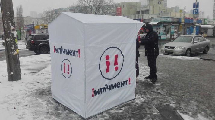 Зазначимо, що сьогодні політтехнолог Сергій Гайдай опублікував на Facebook фото білборда, а також палатки, на яких написано лише одне слово «Імпічмент!»