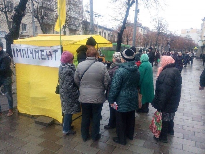 Нагадаємо, що на цю неділю запланований марш «за імпічмент» від парку Шевченка. Один із соратників Саакашвілі Юрій Дерев’янко зареєстрував відповідний законопроект «Про президента України та порядок припинення його повноважень», в якому прописаний механізм відсторонення голови держави, і протестувальники вимагатимуть його прийняти. Судячи з усього, 3 грудня в Києві і регіонах планується провести «народне голосування» за імпічмент, бо організатори планують установити намети з написом «Імпічмент», готують скриньки і бюлетені для голосування. Загалом наметів зі скриньками планується установити півтори сотні, надрукувати бюлетенів – більше трьохсот тисяч, листівок з закликом про недовіру Порошенку – сімсот тисяч, а флаєрів-запрошень на приєднання до протесту – мільйон штук.