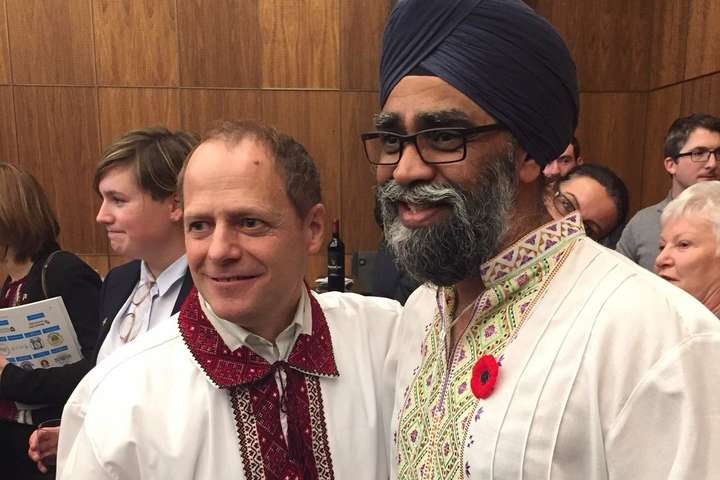 Міністр національної оборони Канади Хардж Саджан з нагоди «Українського дня» в парламенті країни одягнувся в українську вишиванку, а також розмістив в своєму Twitter повідомлення українською мовою.