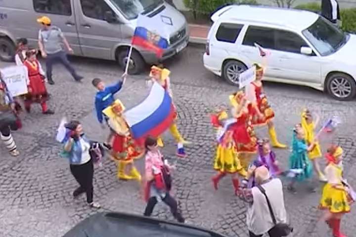 Російські прапори з'явилися на вулицях Батумі під час вуличної акції в рамках міжнародного фестивалю.