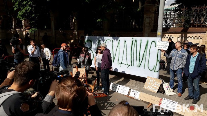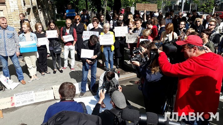 Сьогодні, 22 травня, біля будівлі Адміністрації президента зібралося близько 100 кінематографістів, які прийшли підтримати ув’язненого у російській тюрмі українського режисера Олега Сенцова. Про це повідомляє кореспондент «Главкома».