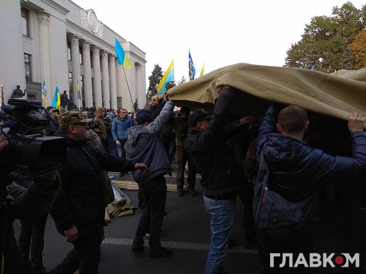 Мітингувальники ставлять намети біля Верховної Ради