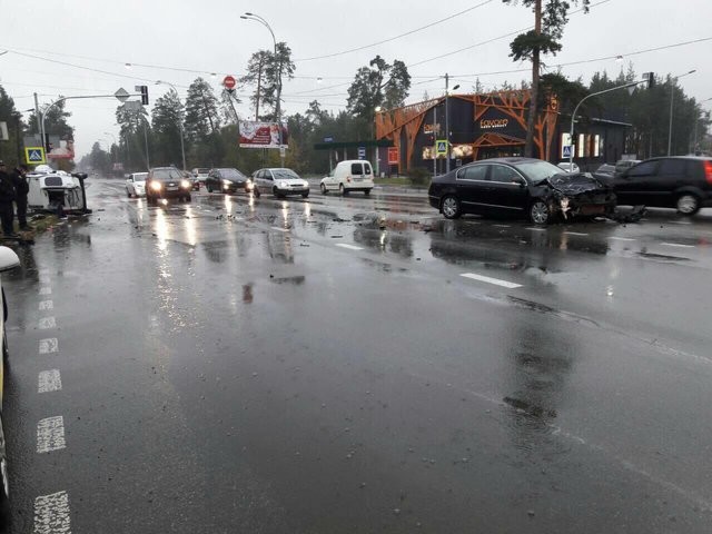 Аварія сталася неподалік від Шулявського мосту в напрямку центру. Зіткнулися легковики Audi, Daewoo, Volkswagen, Mercedes i Mazda.