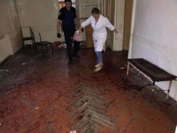 Через декілька хвилин оператор опиняється усередині відділення. На відео видно закривавлених людей: у когось порізана шия, у когось – руки, а в одного чоловіка великий та глибокий поріз на спині. Також видно велику калюжу крові на підлозі.