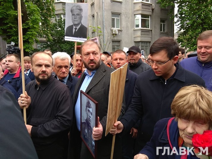 На акцію «Ніхто не забутий, ніщо не забуте», яка є аналогом російського «Безсмертного полку», прийшли народні депутати Євген Мураєв, Вадим Новинський, Юрій Бойко, Нестор Шуфрич, народні депутати з «Опозиційного блоку» Олександр Долженков, Василь Німченко, екс-регіонал Василь Горбаль.
