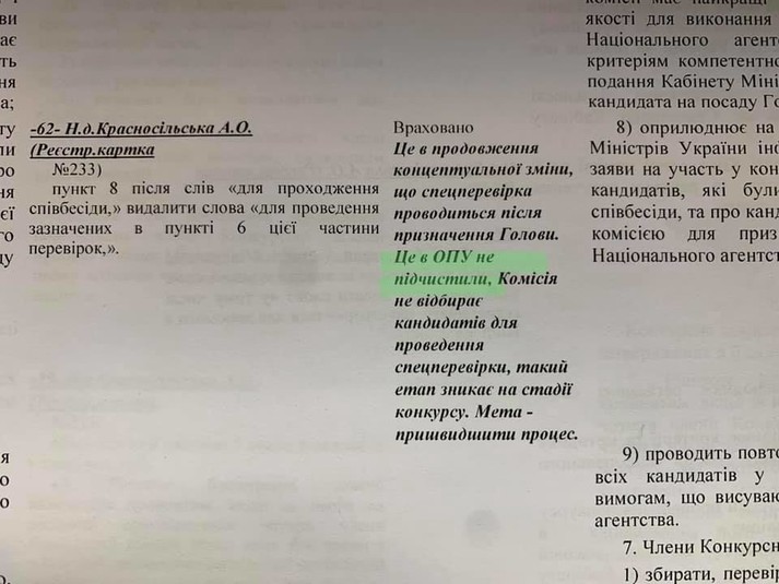 Сьогодні, 19 вересня, на засіданні комітету антикорупційної політики, де розглядали правки щодо призначення голови НАЗК, стався цікавий конфуз. Присутнім роздали роздруковані папірці із правками до законопроєкту, де забули «підчистити» коментарі, з яких чітко видно, що Офіс президента бере безпосередню участь у написанні законів.