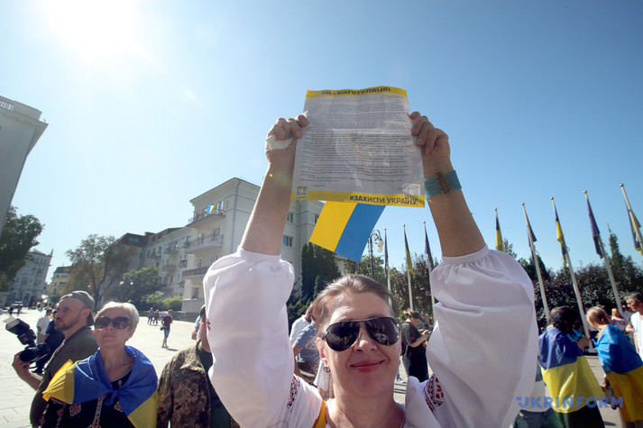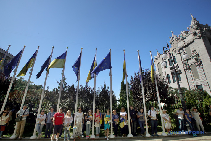 Переважна більшість учасників заходу прийшла на акцію в святкових вишиванках або військових одностроях. Люди тримали державні прапори та підписували листи-звернення до президента, повідомляє Укрінформ.