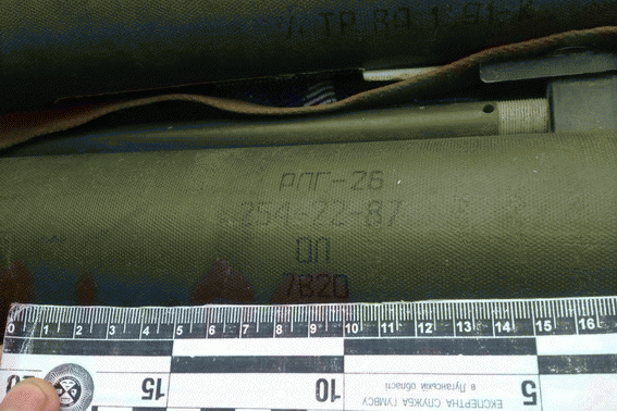 Вказано, що правоохоронці вилучили з автомобіля 3 ручні протитанкові гранатомети РПГ-26, 4 постріли до ручного протитанкового гранатомету РПГ-7, 3 гранати Ф-1 без запалів, 1 гранату РГД-5 з запалом, 1 гранату ГРН з запалом, 55 гранат до підствольного гранатомету-ВОГ-25 П, 414 набоїв калібру 14,5 мм, 65 набоїв калібру 5,45 мм та 1 026 набоїв калібру 7,62 мм.