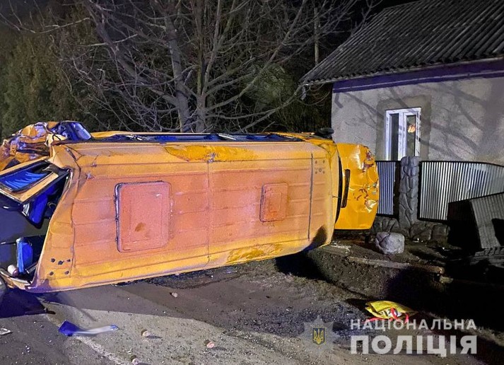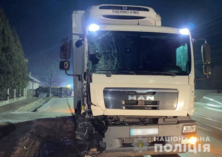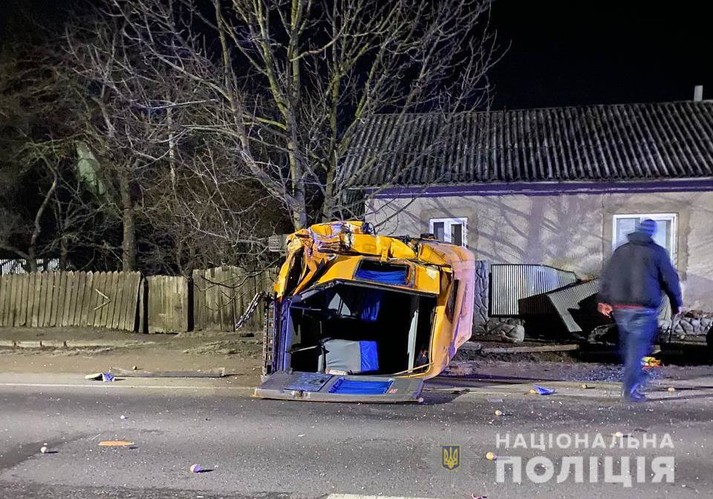 У Чернівецькій області вантажний автомобіль MAN протаранив припаркований маршрутний автобус Mercedes-Benz 312, який від удару перекинувся. Про це повідомляє пресслужба Нацполіції.