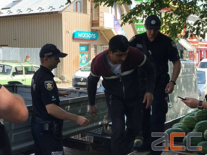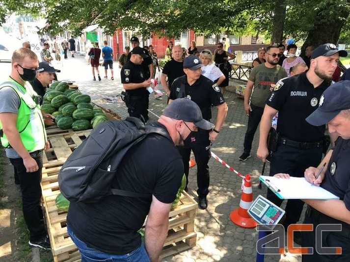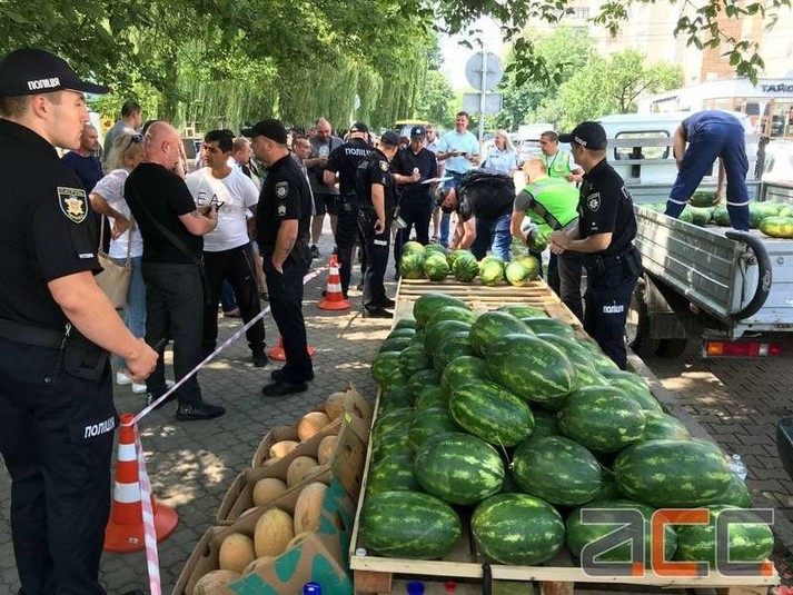 Скандал на ринку в Чернівцях. Поліціянти вилучили кавуни у продавця (фото)