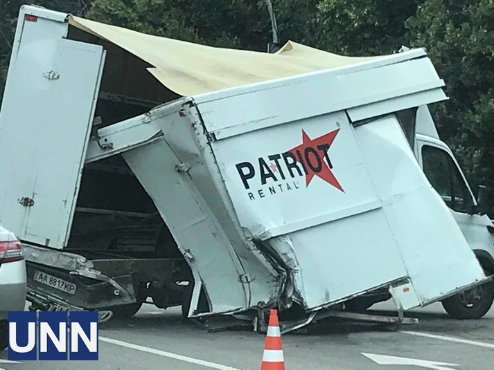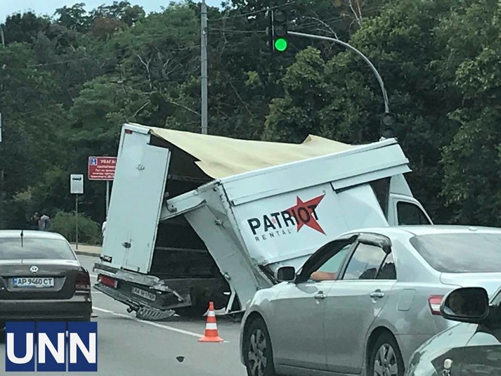 В напрямку до лівого берега зіштовхнулись дві вантажівки, в результаті чого одна з них опинилась біля обочини, а друга, із розбитим задом, вилетіла на смугу зустрічного транспорту