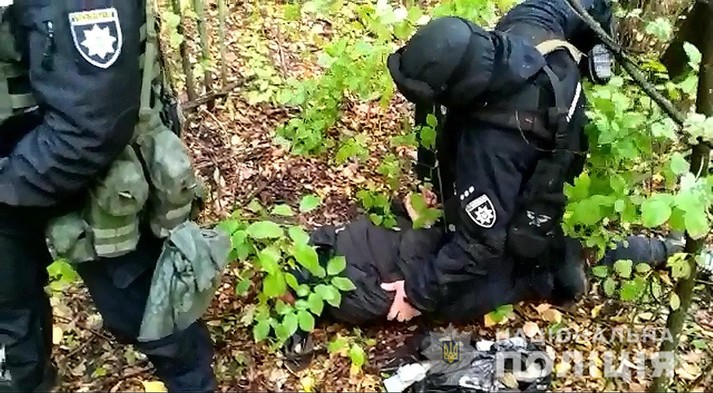 В результаті пошукових заходів, на відстані близько чотирьох кілометрів від місця вчинення кримінального правопорушення поліцейські помітили двох чоловіків які бігли з лісосмуги до гаю.