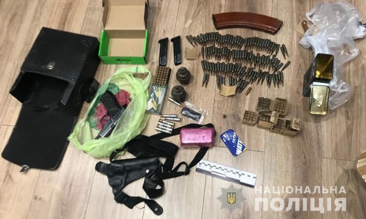 Працівники поліції провели обшуки за місцем проживання підозрюваного й виявили велику кількість набоїв, гранати, вибухівку та зброю, з якої могло бути вчинено вбивство.