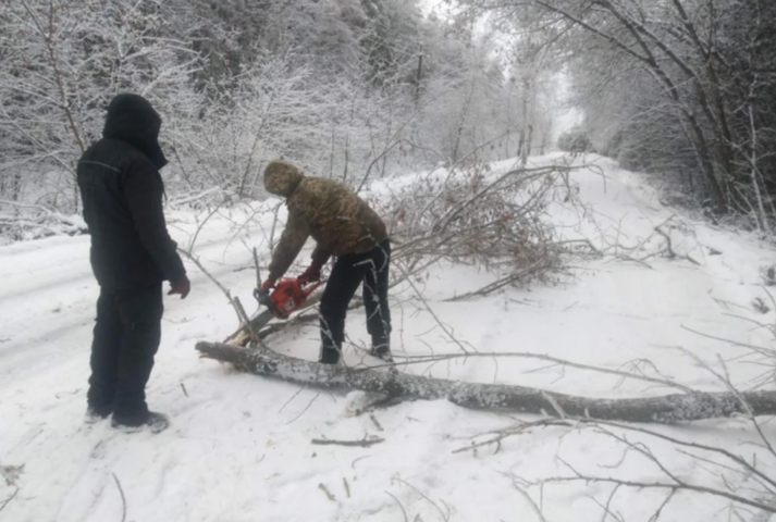 На Чернігівщині сильний снігопад повалив на дороги понад 200 дерев (фото)