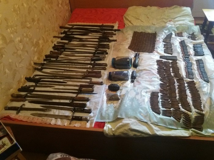 Під час обшуків у місцях проживання торгівців, співробітники СБ України вилучили дві гранати Ф-1 із запалами, майже три кілограми артилерійського та балістичного пороху, понад вісімсот набоїв різного калібру, зокрема до автомату Калашникова, крупнокаліберного кулемету, пістолетів Макарова та ТТ, велику кількість холодної зброї.