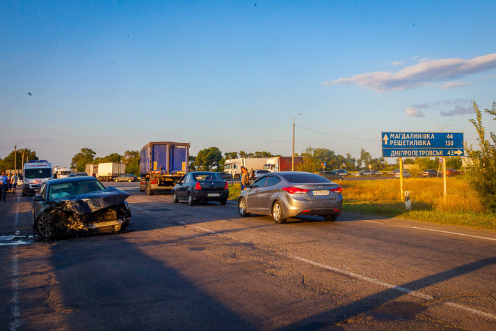 На Полтавському шосе між Лобойківкою і Єлизаветівкою у Дніпропетровській області зіткнулися легковий автомобіль Audi і рейсовий автобус з пасажирами.