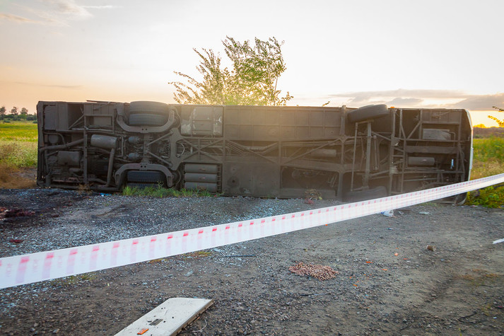 Автобус піднімали за допомогою автокрана. Правоохоронці з'ясовують деталі події і встановлюють точну кількість жертв і постраждалих.