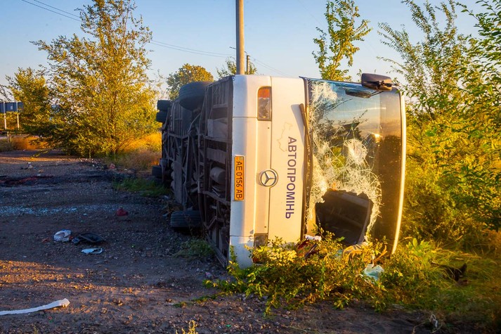 Заступник начальника Нацполіції в Дніпропетровській області Володимир Богоніс розповів, що Audi рухалася по шосе з боку Дніпра, автобус їй назустріч — з боку Лобойківки. Водій легкового автомобіля не відреагував на знак «Стоп» і «влетів» автобусу в бік, через що він перекинувся.