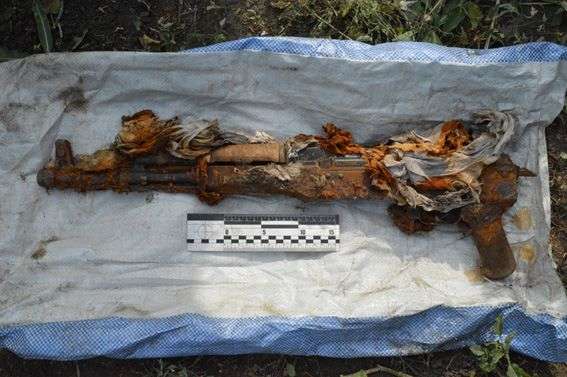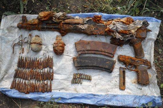 У мішку знаходилося 55 набоїв до автомату, 14 набоїв до пістолета, 2 гранати із запалами, автомат Калашникова та пістолет Макарова.